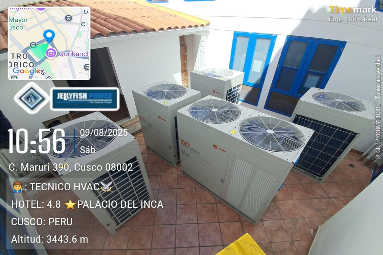Instalación de sistema de aire acondicionado y ventilación mecánica en el Hotel Palacio del Inka, ubicado en el corazón de Cusco, Perú. El proyecto incluye la implementación de un sistema VRF (Volumen de Refrigerante Variable) para optimizar la eficiencia energética y proporcionar un control preciso de la temperatura en las habitaciones y áreas comunes del hotel.